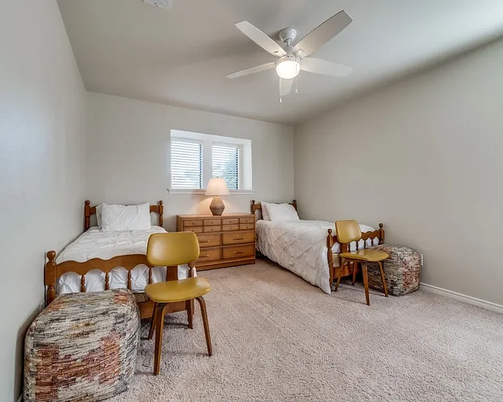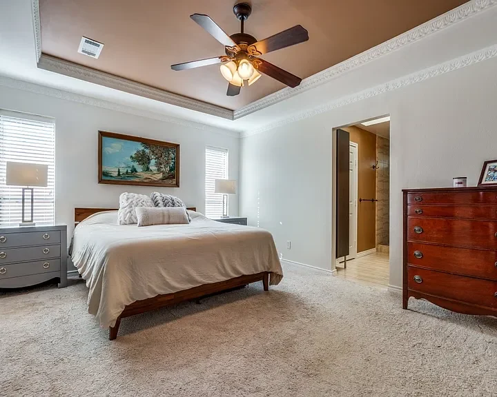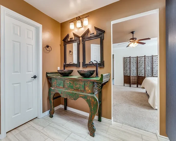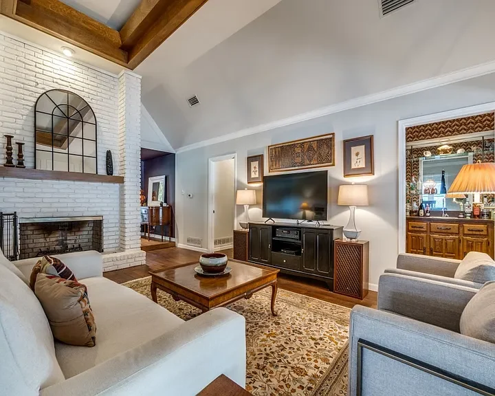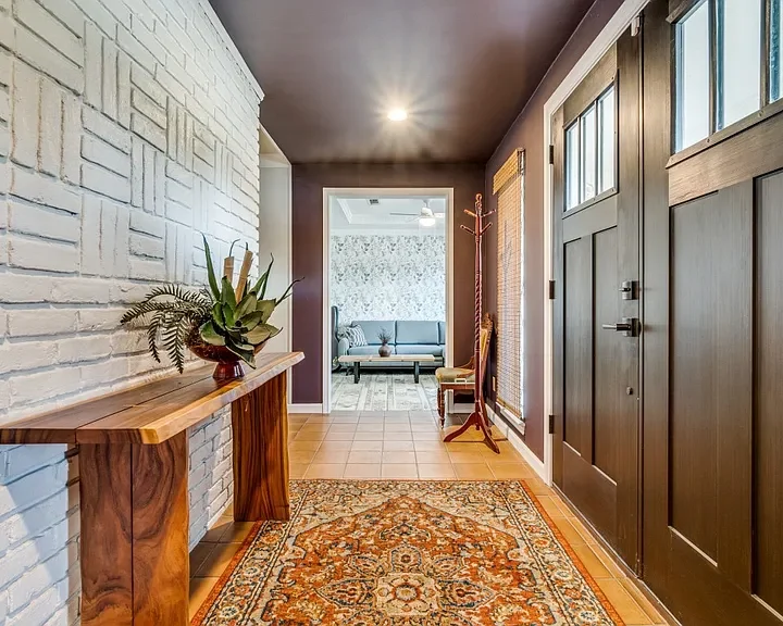 Designer-inspired renovations and decor make this beautiful home unique and desirable. Amazing antique french doors shipped from New York State provide entry into a spacious library-2nd master w-vaulted ceiling, updated ensuite bath featuring striking designer WP. Recently installed water-resistant engineered hardwood floors grace the family room, hallways and 2nd master-library. Formal dining-2nd living-flex room features a bay window with seating, bamboo floors, and an accent wall with designer WP. Large WBFP and unique 14-ft ceilings in the main living area create a warm, inviting atmosphere, and walls of windows bathe the entire area with tons of natural light. Serve meals in the oversized breakfast nook where a beaded light fixture adds a touch of rustic whimsy. The huge primary master suite features a renovated bath with a doorless, walk-in, spa-like shower, custom counter and sinks, and two large walk-in closets. A large shaded backyard features graceful, mature trees, and an oversized two-car garage provides space for woodworking or other hobbies.