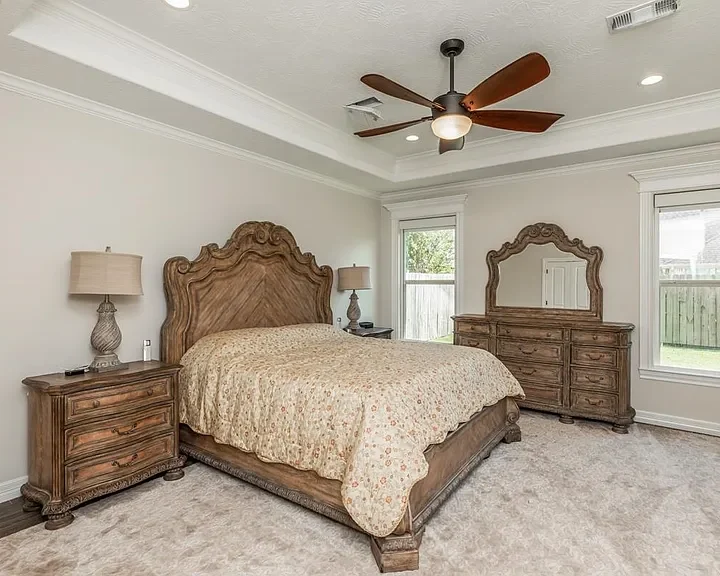 Your next door opens in Beaumont’s Champions neighborhood! Built in 2020, this one-owner residence offers modern comfort and style with a two-toned brick exterior for inviting curb appeal. The spacious interior combines both everyday living and entertaining, featuring a formal dining room ideal for gatherings complimented by a large open kitchen with abundant cabinetry and counter space. The upstairs flex space provides endless possibilities—whether you need a hobby room, additional workspace, or extra sleeping room. Upgraded amenities include the remote controlled custom blinds. Step outside to enjoy the expansive covered back porch, complete with a built-in outdoor kitchen, perfect for year-round grilling and relaxation. The fenced-in backyard offers green space for play and outdoor activities. This home is a perfect blend of elegance and functionality. Don’t miss out!